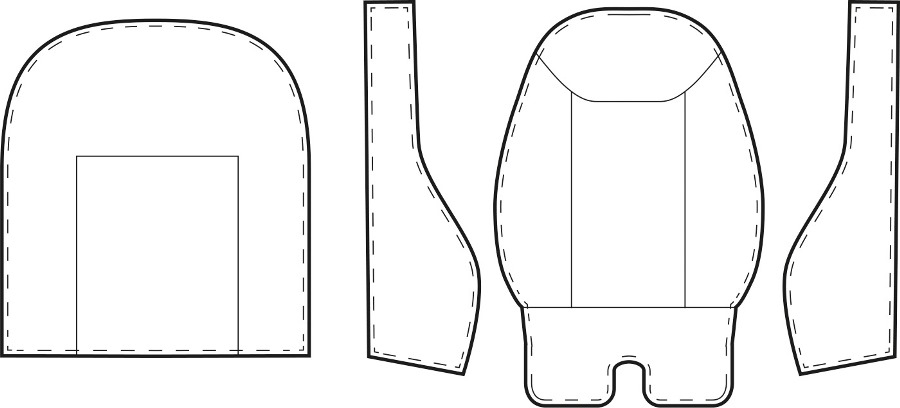 Новые лекала для универсальных чехлов с тянущимся материалом на тыльной стороне, позволяют добиться более точного облегания сидений современных автомобилей. Инновационный 3D крой исключает появление «эффекта барабана» и складок.