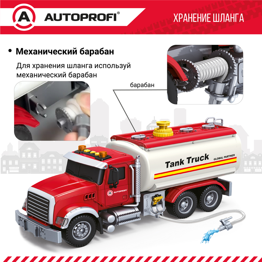 Инерционный городской транспорт с подвижными деталями "Бензовоз", свет, звук, 35 см