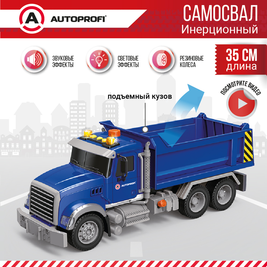 Инерционный городской транспорт с подвижными деталями "Самосвал", свет, звук, 35 см