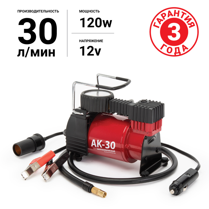 АК-35 — это компактный автомобильный компрессор с поршневым насосом ивстроеннымманометром. Производительность — 30 л/мин. Отличный вариант для легкового автомобиля малого и среднего класса с диаметром шин до R14.