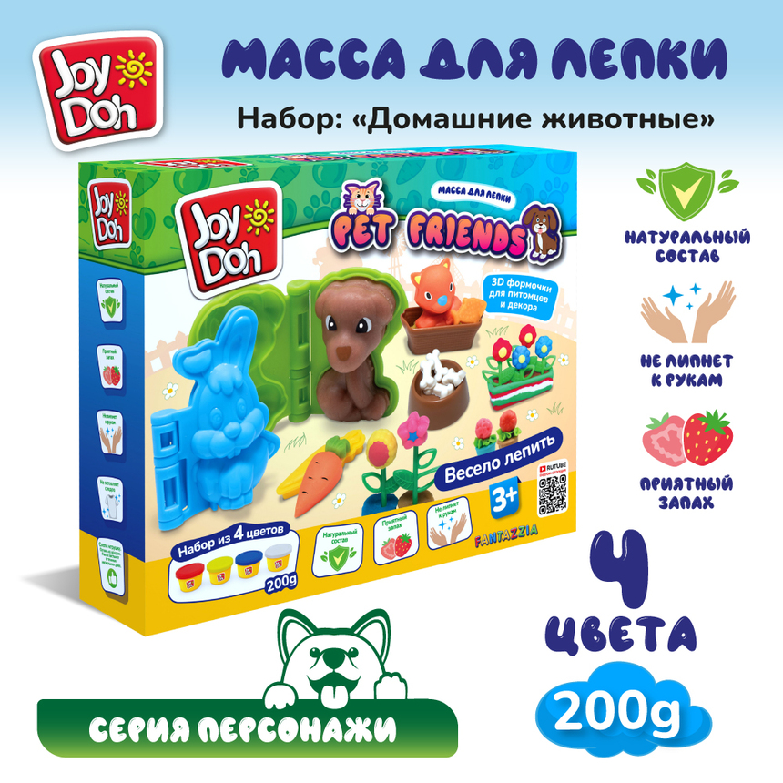 Масса для лепки Joy Doh, набор PET FRIENDS - ДОМАШНИЕ ЖИВОТНЫЕ, 3d формы, 26 аксесуаров, 4 баночки с тестом, (4 х 50г.)
