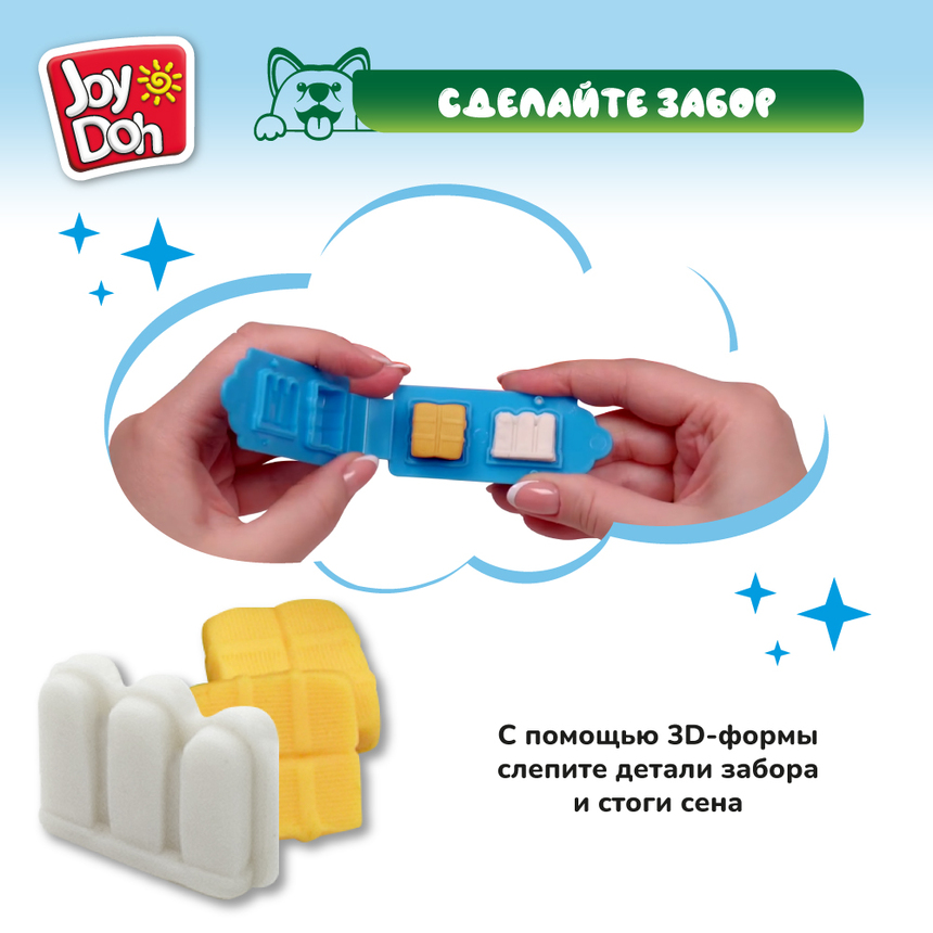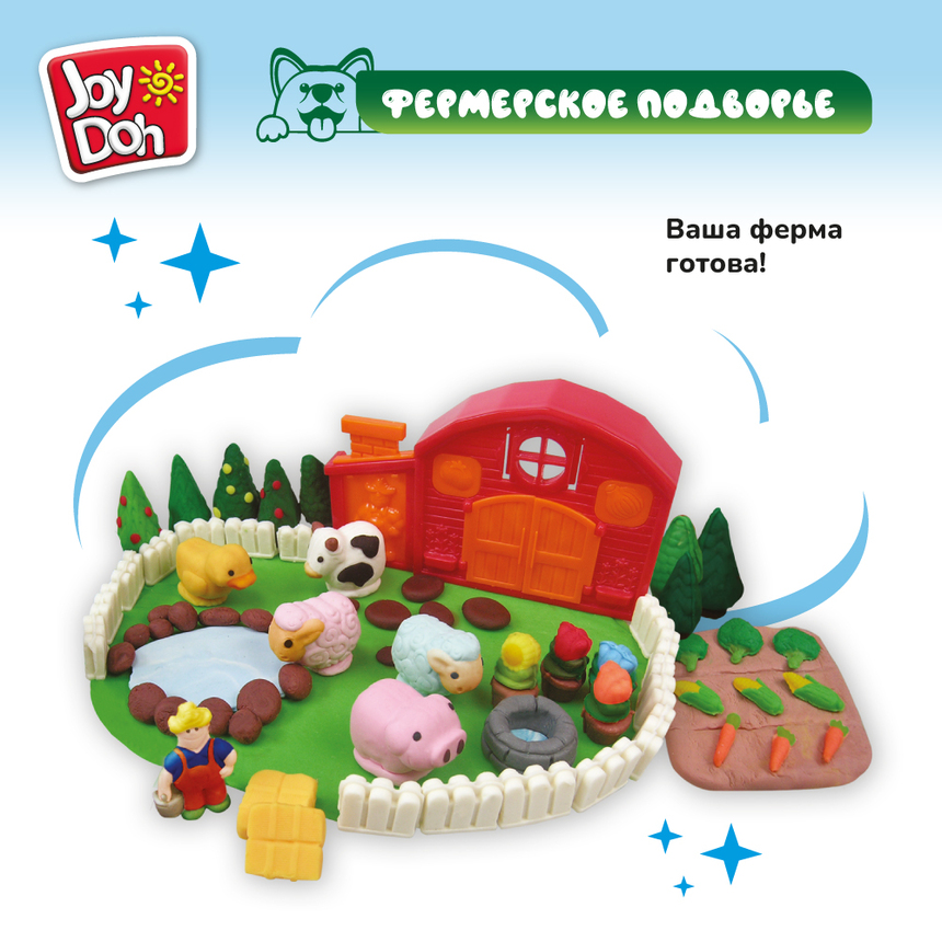 Масса для лепки Joy Doh, набор FARM PLAYSET - ФЕРМЕРСКОЕ ПОДВОРЬЕ, 3d формы, бол. ферма, 17 аксессуаров, 4 баночки с тестом,  (4 x 56 г.)