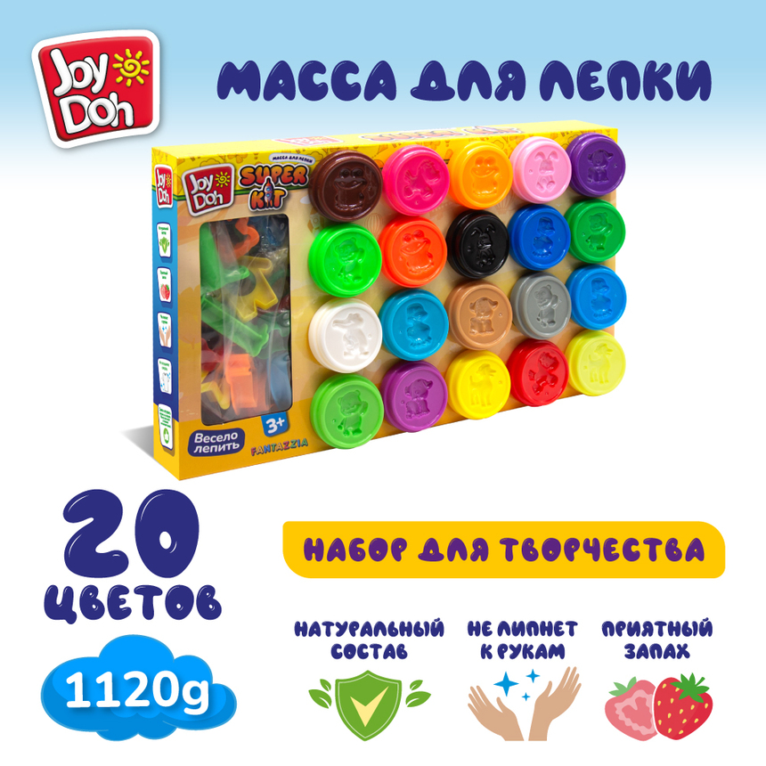 Масса для лепки Joy Doh, набор SUPER KIT - СУПЕР НАБОР С ФОРМАМИ, большая упаковка с пресс-формами, 20 баночек с тестом, (20 х 56 г.)