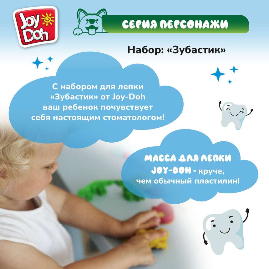 Масса для лепки Joy Doh, набор DENTIST SET - ЗУБАСТИК с золотыми зубами, 7 аксессуаров, 7 баночек с тестом, (7 х 50г.)